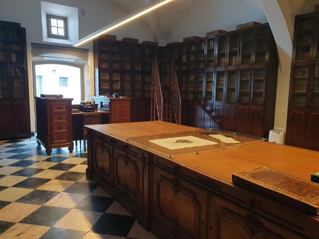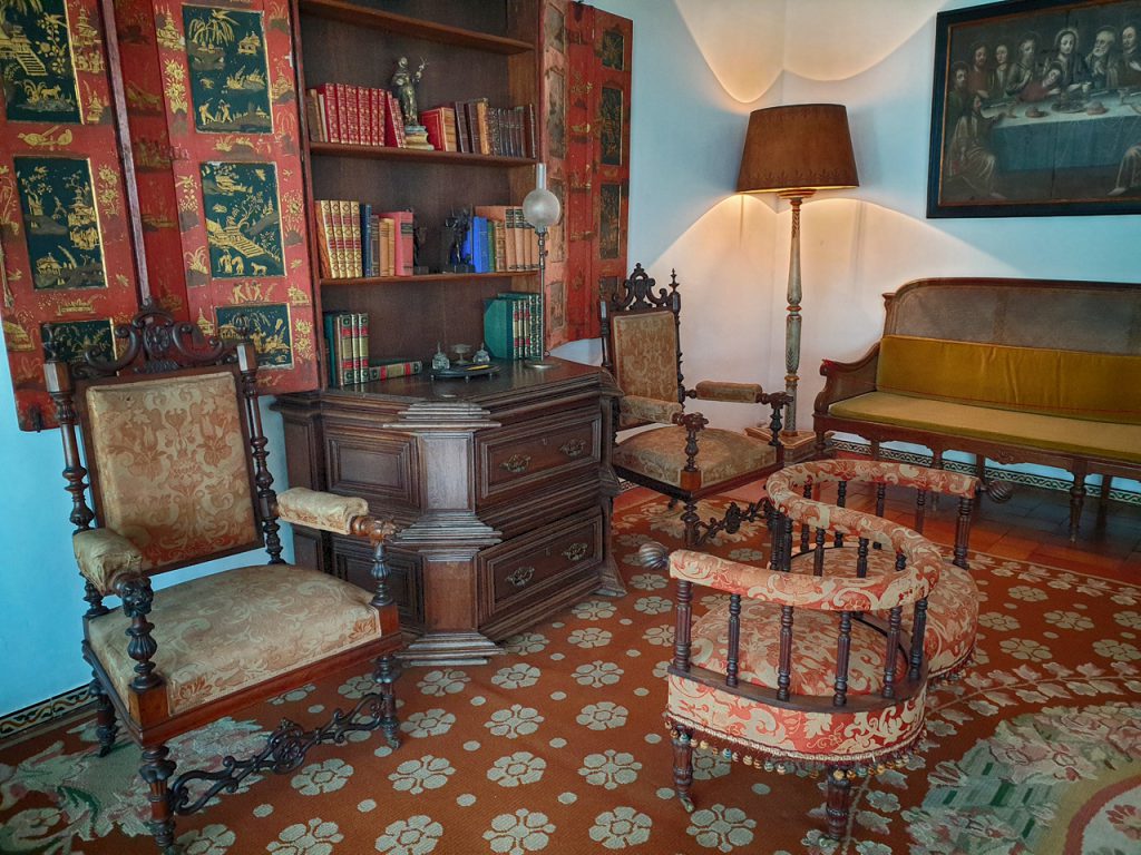 Terminada a visita das seis salas e cozinha a simpática funcionária sugere-nos que demos uma vista de olhos à bilblioteca. Ao contrário do que pensava, trata-se de uma biblioteca histórica, não funcional. Como que uma extensão dos espaços antes visitados.