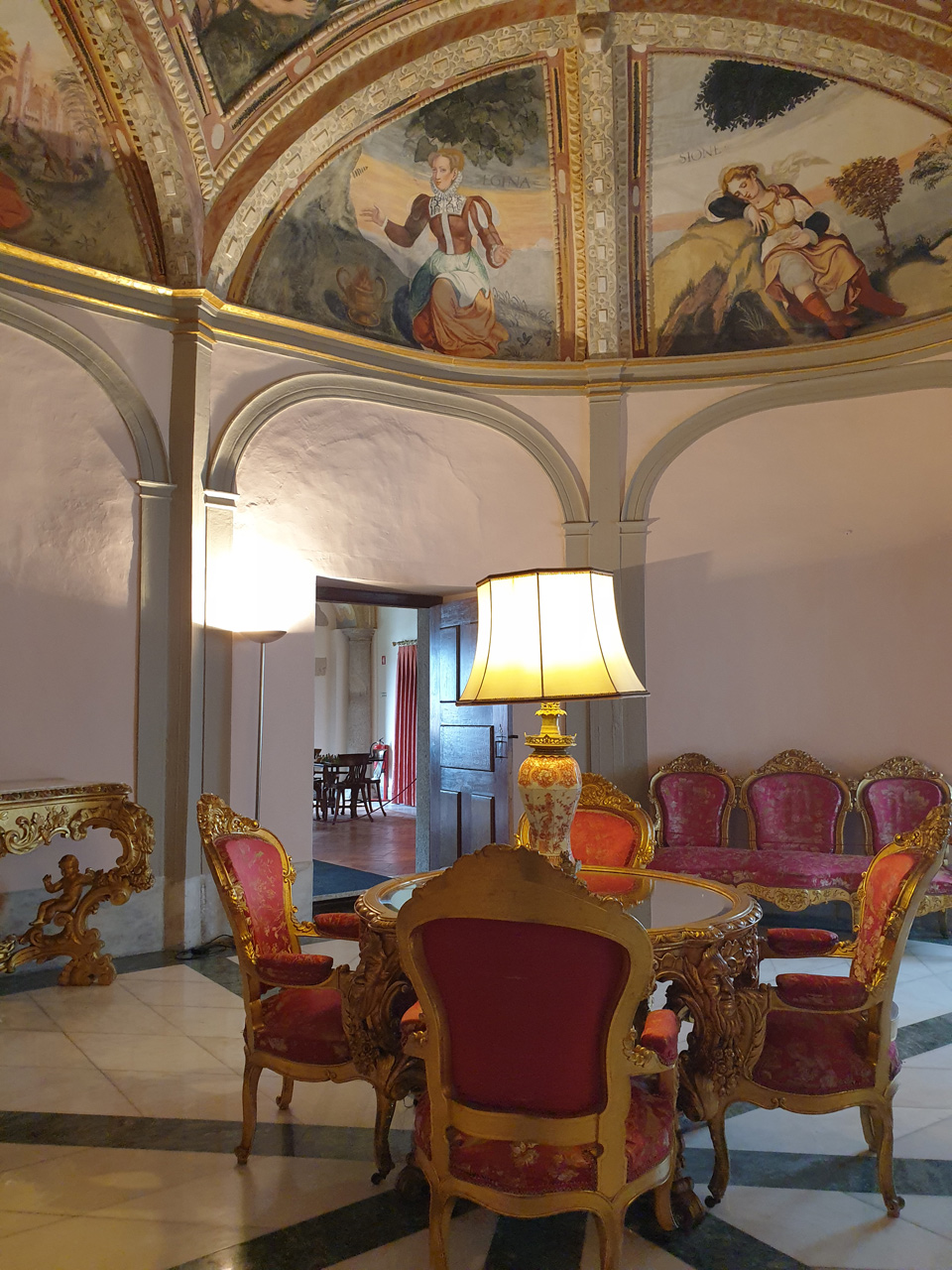 Vi salas de jogo, salões sociais, e mais salas. A cozinha, como quase sempre acontece nestes palácios, é especialmente interessante. Todos os espaços têm um código QR que, depois de lido pelo telemóvel, conduz a uma página com uma história detalhada.