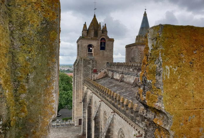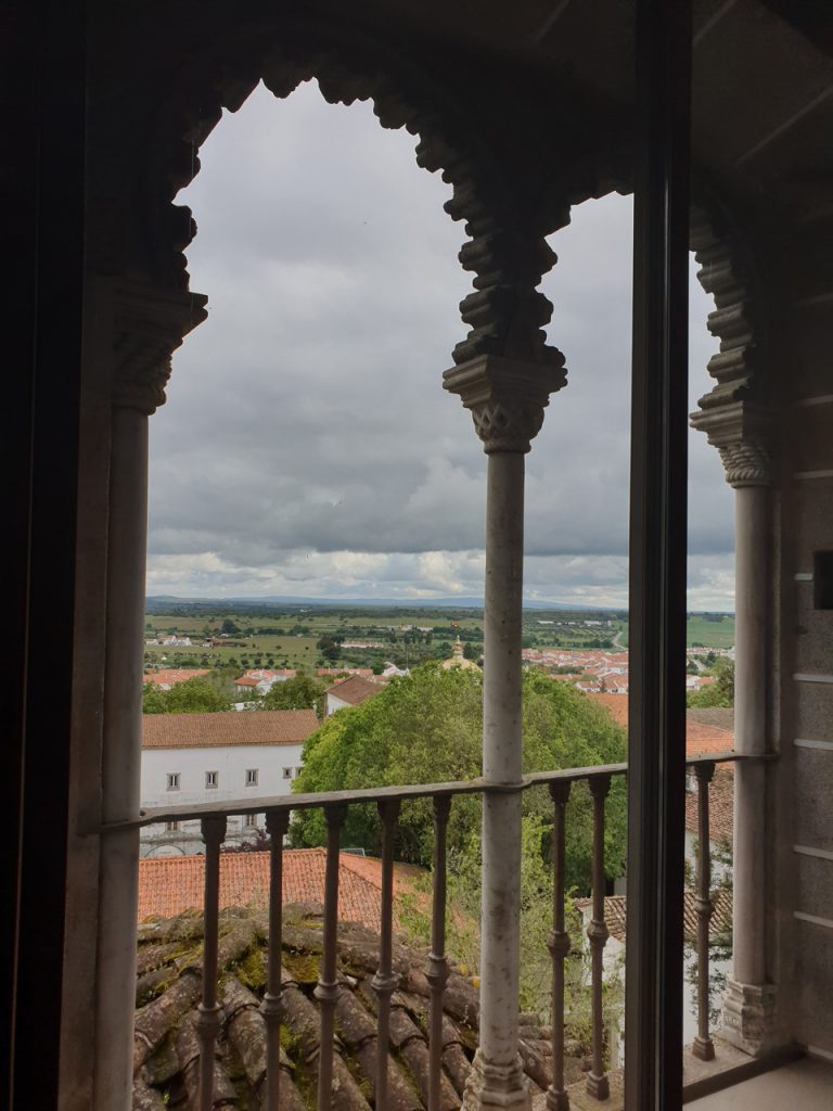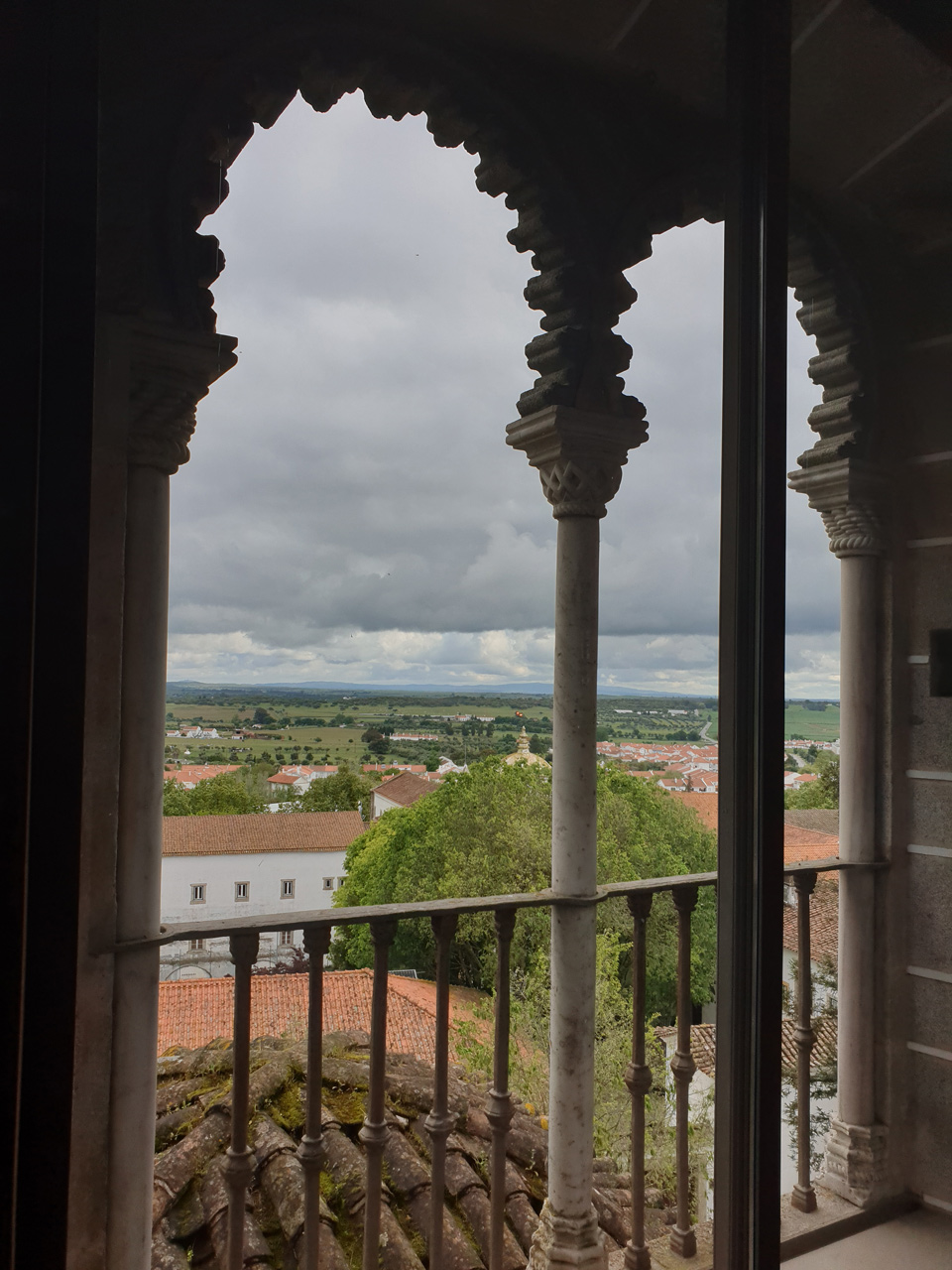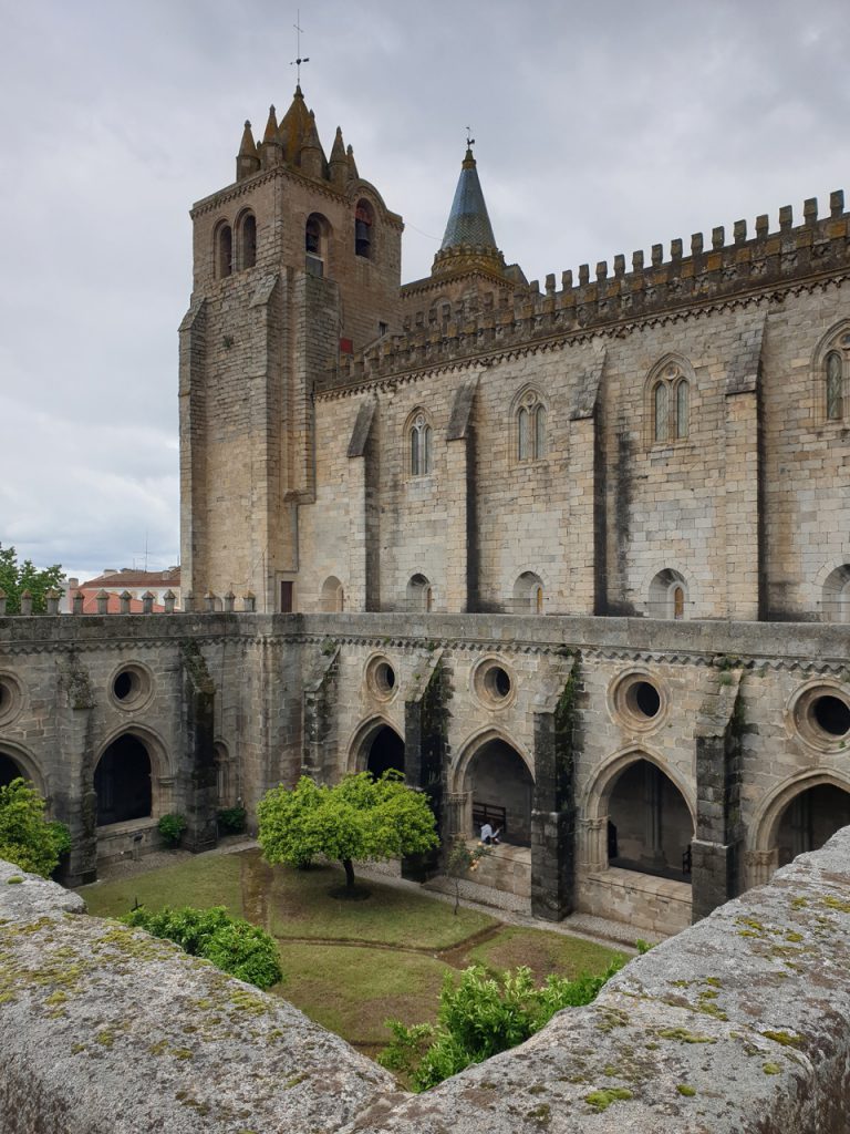 Dali tem-se provavelmente a melhor vista da cidade (não sobre a cidade, que isso, penso, será do alto de São Bento). Mas a catedral está no ponto mais alto de Évora e bem no seu centro. Pode-se portanto usufruir de uma visa 360 graus da cidade, à medida que caminhamos em redor dos terraços. Além disso há também umas perspectivas interessantes da própria catedral e do claustro, lá em baixo.