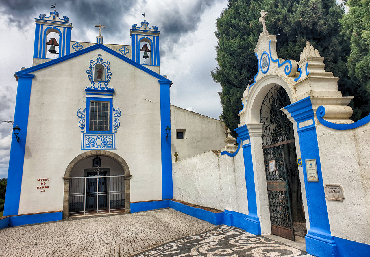Depois de sair da zona muralhada por outra porta, a Porta da Ravessa, aquela que dá o nome ao vinho de que sou consumidor habitual (e contudo, foi preciso chegar a esta semana para descobrir onde era produzido), vamos até ao cemitério, um pouco mais abaixo, junto a uma igreja bem cuidada e decorada com recortes azuis. O Museu do Barro fica logo à frente. Fechado, claro.