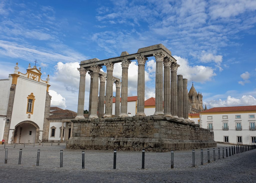 Chega o André. Instalado e apresentado à casa, vamos dar uma volta a pé. Seria exaustivo relatar aqui em detalhe por onde passámos. Naturalmente, pelos pontos marcantes da cidade: Templo de Diana, Praça do Giraldo, Catedral. E também por milhentas ruas, vielas e becos. Mostrando-lhe as casas em consideração e as que não o estando também se encontram à venda.