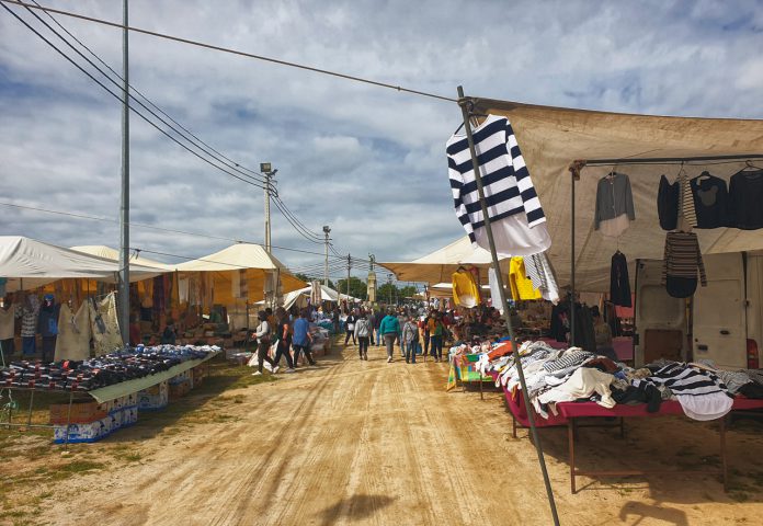 Mesmo assim fiz umas comprinhas, já a pensar como a feira deve ser animada em tempos normais. Roupa interior, uma manta quentinha para os serões mais frios e uma peça de cerâmica, muito barata. E antes de terminar a visita deliciei-me com uma bifana à maneira, regada com uma cerveja bem fresca.