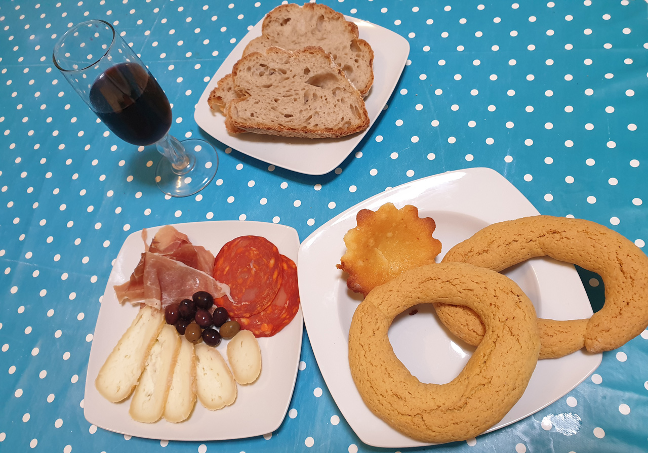 Em casa preparo um belo prato, como gosto… chourição, presunto, queijo, azeitonas e meio copo de Porta da Ravessa, ainda mais saboroso agora que visitei as terras de Redondo.