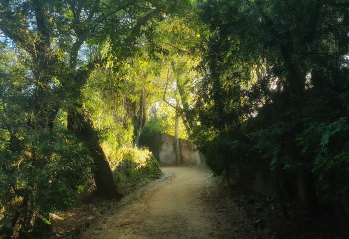 Sabia portanto hoje onde me dirigir, tendo chegado ao Templo de Diana depois de uma breve caminhada desde casa. Por detrás há o discreto acesso a esta zona e logo estava a entrar no Paço cujo acesso é gratuito nestes tempos de pandemia.