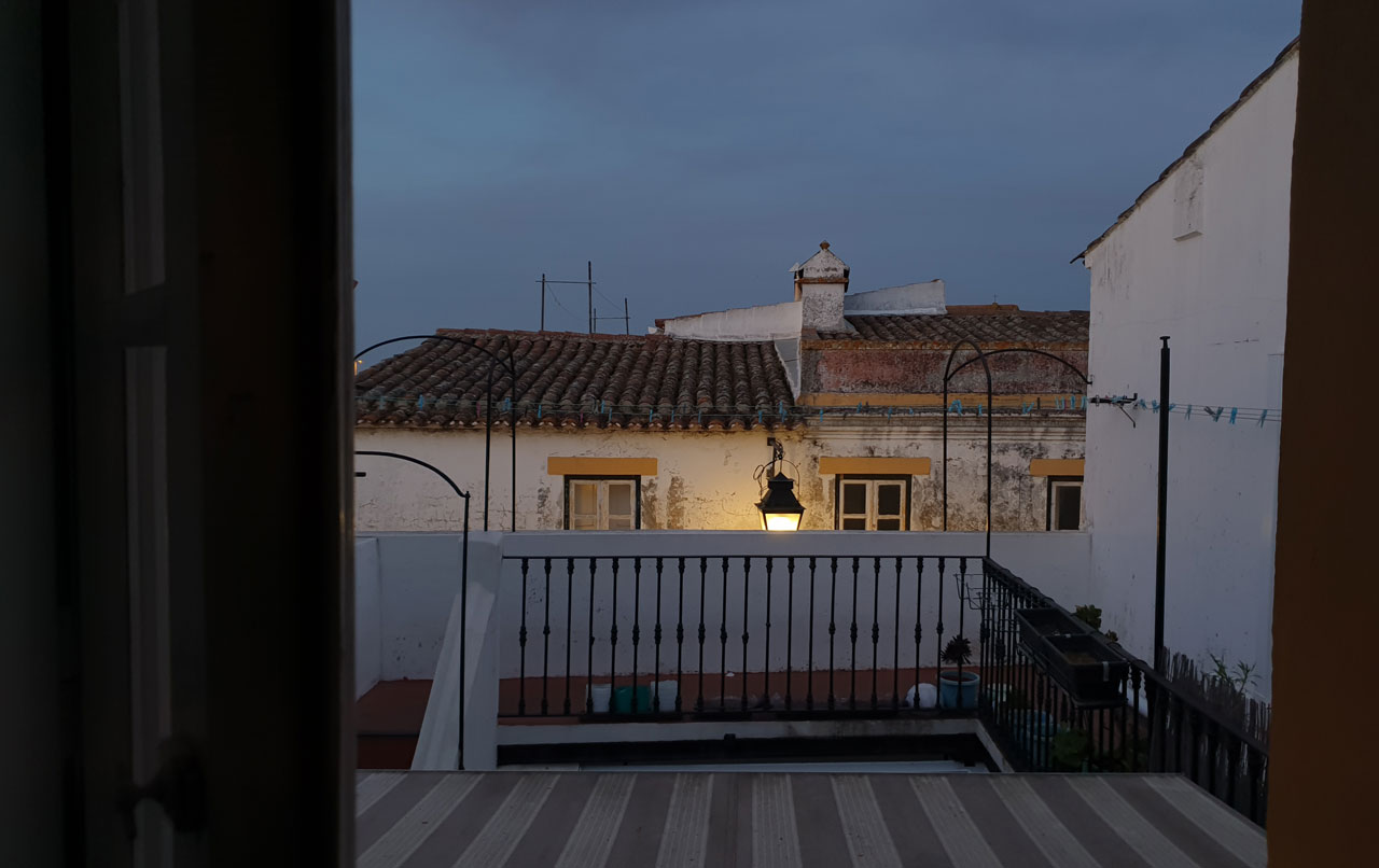 O dia chega ao fim. É hora de subir ao terraço e absorver a luz maravilhosa do por-do-sol. Este é um dos melhores terraços de Évora. É amplo e tem vistas em redor, nenhum outro terraço lhe faz sombra, é um espaço delicioso. Vou sonhando com as muitas horas de leitura que aqui terão lugar nas próximas semanas.
