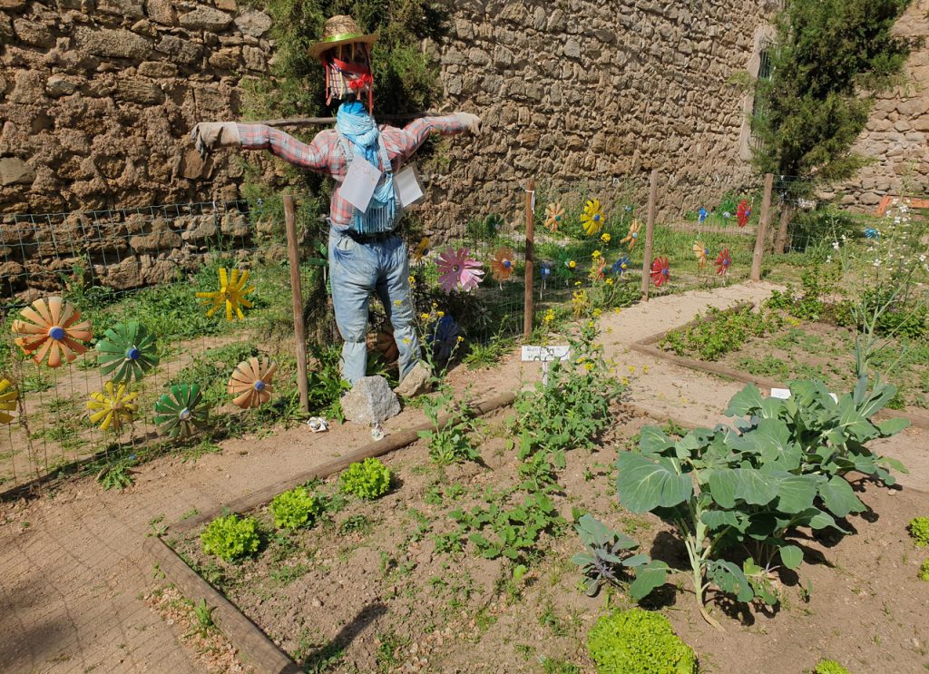 Numa área mais escondida do parque encontro uma hortinha comunitária muito especial: os utilizadores são crianças que aqui vêm plantar as suas alfaces e outros legumes que, digo-vos, fui encontrar com um aspecto muito desejável. Há até um espantalho. Não sei se cumpre as suas funções diligentemente, mas oferece ainda mais cor aquele cantinho.