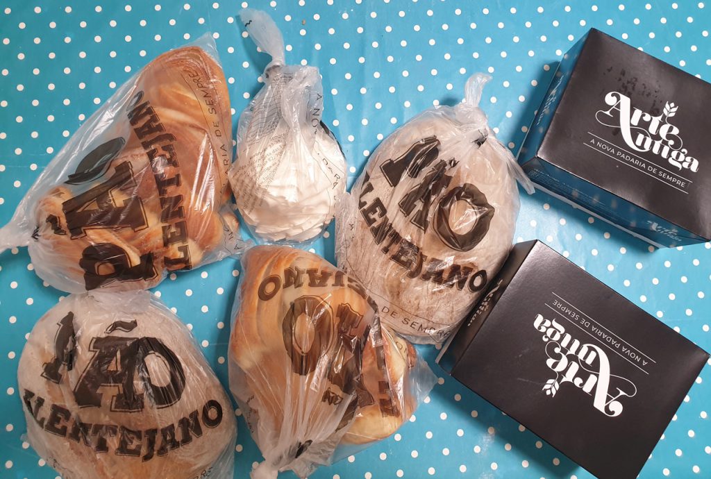 Ora foi preciso vir a Évora para experimentar a coisa. Encomenda feita na véspera na padaria Arte Antiga, uma loja local que vende pão e polos de grande qualidade (estão a ver a Padaria Portuguesa, aquela coisa inflacionada que vende congelados colocados no forno? É o oposto). Levanta-se antes do encerramento, que nestes dias estranhos é pelas duas da tarde. E vem a surpresa… com os 2,90 Euros do cabaz surpresa são colocados em cima da mesa dois pães alentejanos grandes, oito bolos frescos, dois sacos com uns doze bolos de canela, simples e recheados de gila, e ainda um enorme Suspiro. Feitas as contas, fiquei com uns 30 Euros e bens por uma fracção. E vou-lhes dar uso.