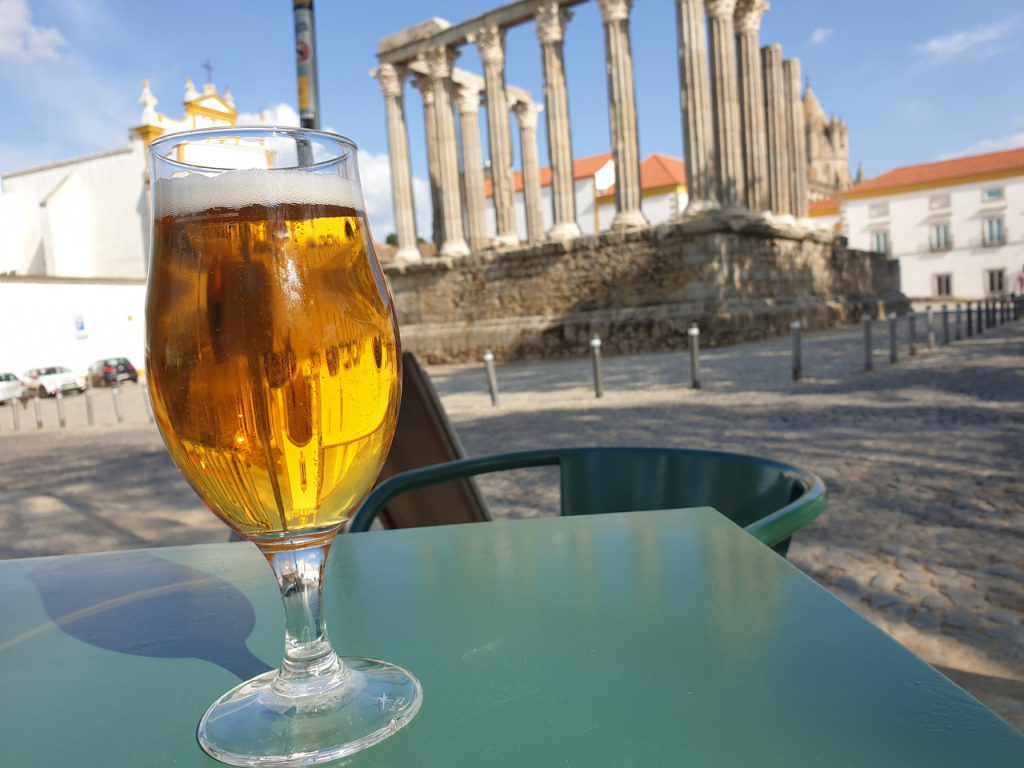 Começo a ficar cansado e que lugar melhor para retemperar forças do que na minha esplanada mais querida de Évora, junto ao templo de Diana. Faz-me sempre lembrar as esplanadas da minha terra, talvez a outras pessoas lhes faça lembrar as das suas terras, mas quando tinha 20 anos e ia namorar, era em esplanadas assim, do jardim da Estrela ao Campo Grande que me sentava para o fazer.