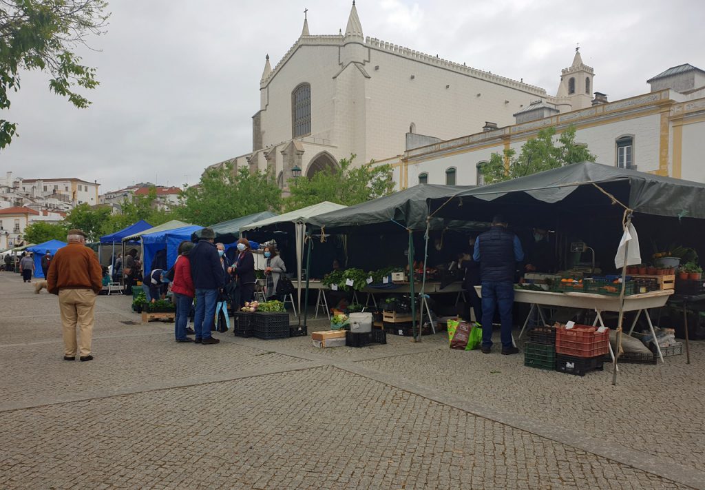 Pelo menos era de caminho. O mercado municipal não fica longe e no exterior, aos sábados de manhã, há mercado. Parece mesmo que em anos normais faz-se também uma feira de velharias. Mas hoje, em época de COVID-19 e com chuva prometido, apenas alguns agricultores a vender o produto do seu trabalho.
